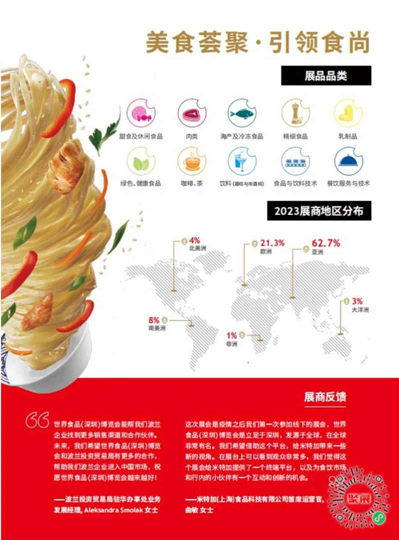 Die diesjährige Ausstellung erstreckt sich über eine Fläche von 35.000 Quadratmetern und erwartet mehr als 700 in- und ausländische Unternehmen als Teilnehmer. Die Exponate decken die gesamte Wertschöpfungskette ab, darunter Süßwaren, Meeresfrüchte, Feinkost, Bio- und gesunde Lebensmittel, Fleisch, Kaffee und Tee, Milchprodukte, Gastronomiedienstleistungen und Lebensmittelverpackungstechnologie. Die Messe wird ihren internationalen Einfluss in Südchina weiter festigen.