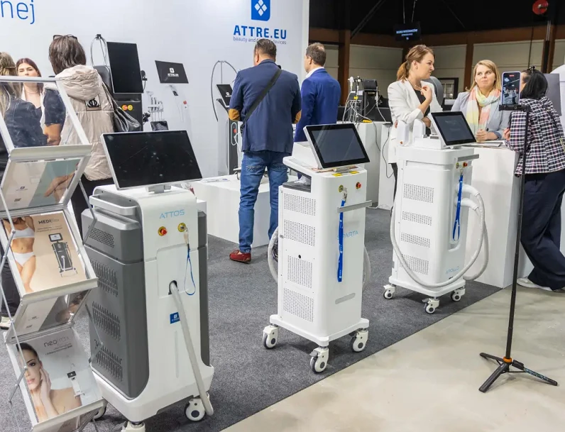 Medizintechnik: Präsentation moderner medizinischer Geräte und Technologien, wie z. B. Lasergeräte, Diagnosegeräte und andere in der kosmetischen Medizin verwendete Instrumente.